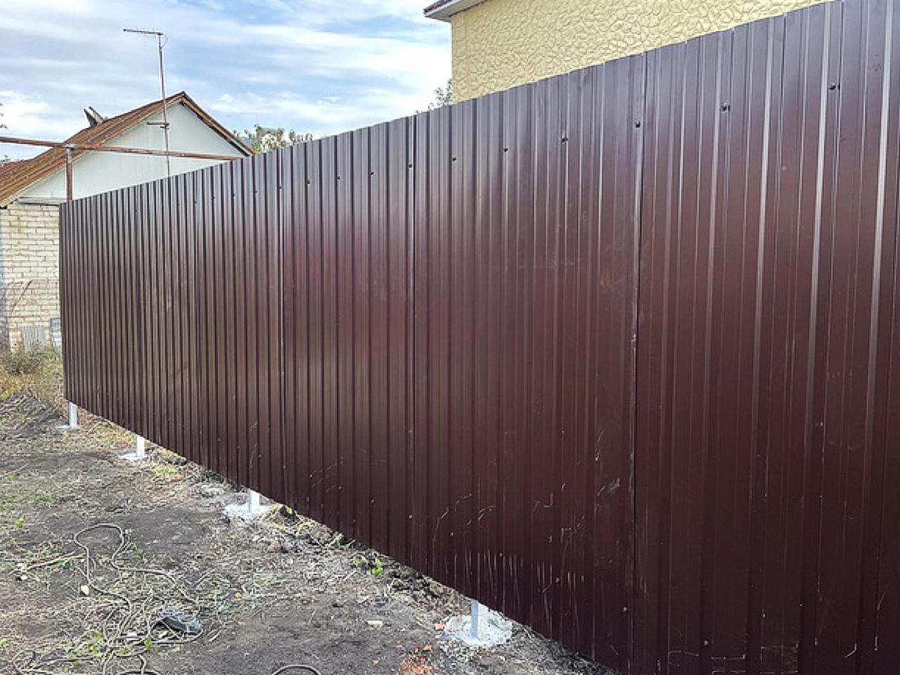 Рассмотрите, пожалуйста, готовый вариант забора из профлиста с калиткой под ключ в Куровском. Ниже в таблице представлены характеристики, комплектация и цена.